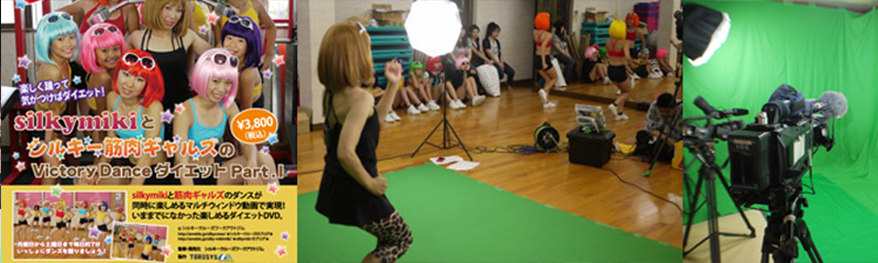 クロマキー合成のためのグリーンバック撮影、出演者のダンス撮影、編集は合成からCG制作、ジャケットデザイン・パッケージデザイン、DVDのプレスパッケージングまで全工程を対応しています。(現在、販売は終了しています)